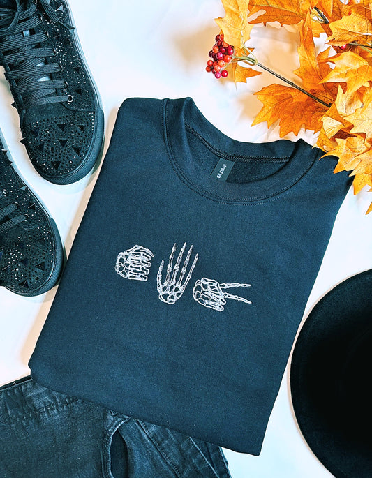 Dancing Skeletons Embroidered Crewneck T-Shirt