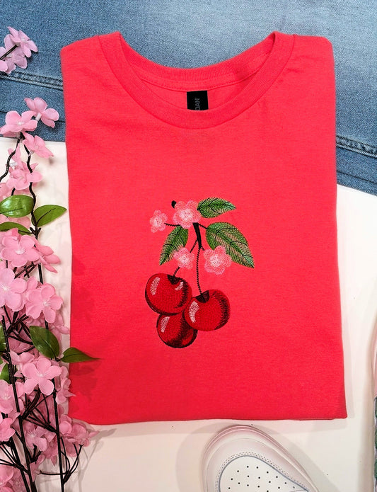 Cherries & Cherry Blossoms Embroidered T-Shirt