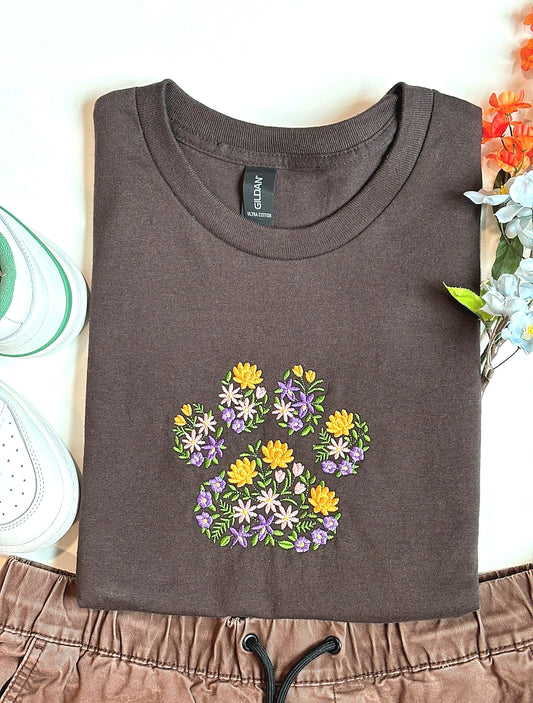 Floral Paw Print Embroidered T-shirt