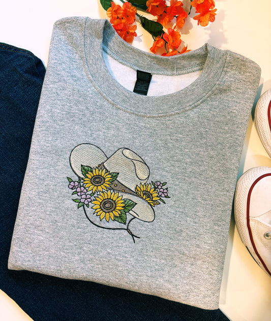 Cowboy Hat And Sunflowers Embroidered Sweatshirt