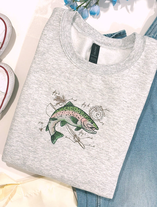 Rainbow Trout Embroidered Crewneck Sweatshirt