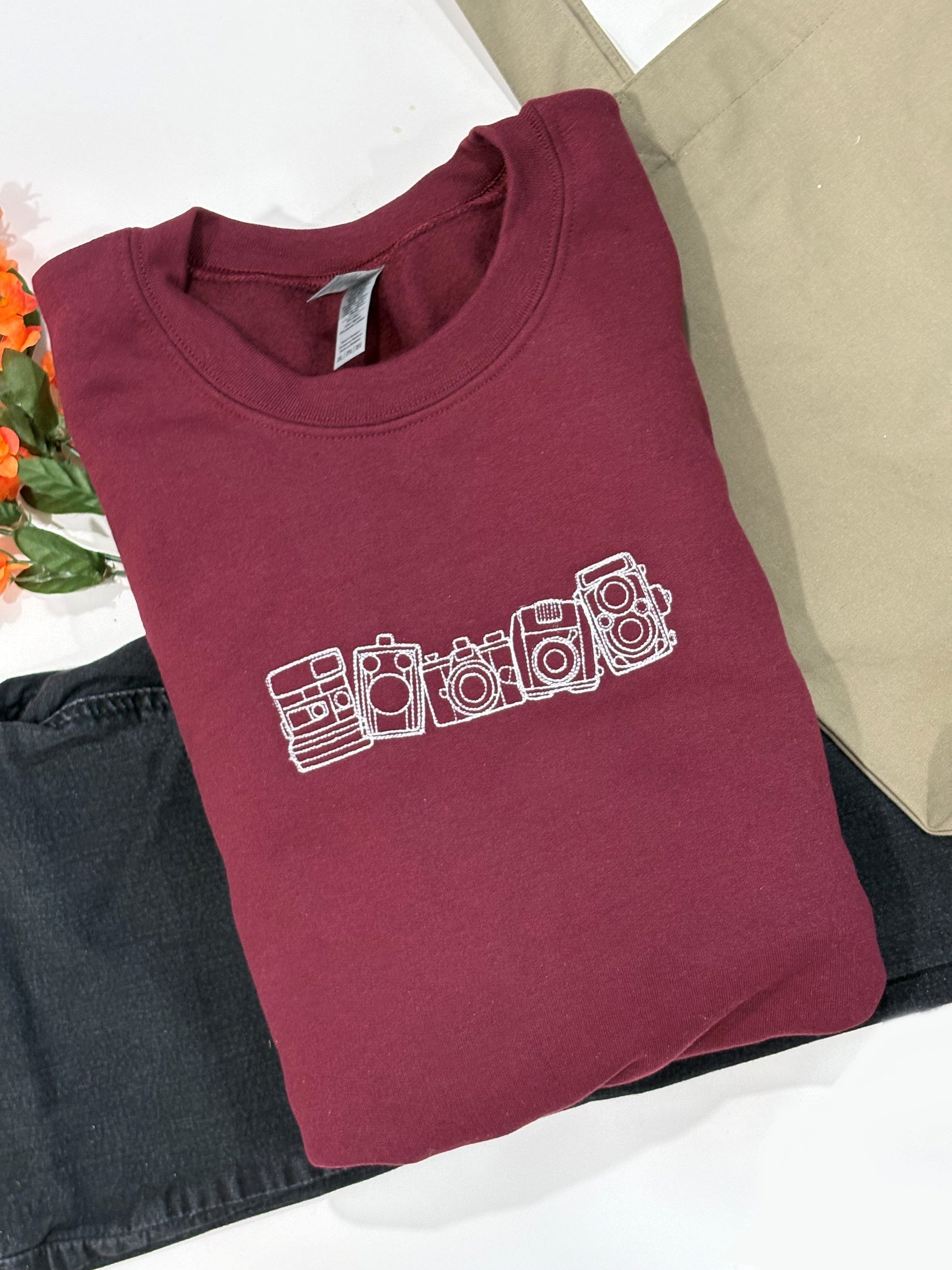 Indulge in retro-chic style with our Vintage Cameras Embroidered Sweatshirt. Showcasing intricate embroidery of vintage cameras, this sweatshirt adds a touch of artistry to your wardrobe. Made with premium material, it offers comfort and a statement-making look. Elevate your fashion game with this exclusive piece.